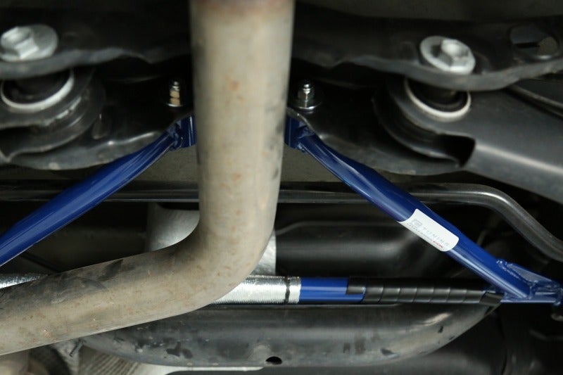 高剛性スチールパイプと補強プレートで形成されるトラス構造の効果によって、リアサスペンションメンバーの剛性を高め、走行中のピボット部に生じる歪みや捻れを抑えてサスペンションのジオメトリー変化を抑制します。